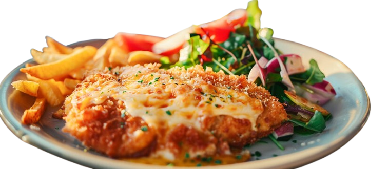 Chicken parmigiana chips & salad